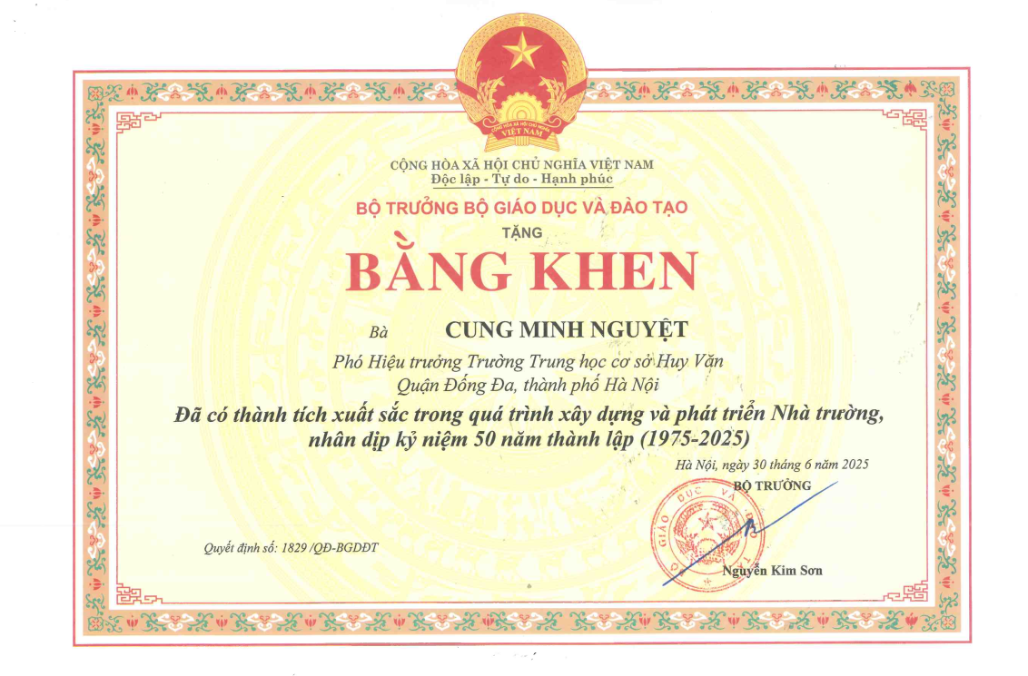 Đây không chỉ là sự ghi nhận xứng đáng cho những nỗ lực, tâm huyết và đóng góp của cô trong sự nghiệp trồng người, mà còn là nguồn động viên to lớn cho toàn thể đội ngũ giáo viên Trường THCS Huy Văn tiếp tục phấn đấu, sáng tạo, góp phần nâng cao chất lượng giáo dục của phường Văn Miếu - Quốc Tử Giám.